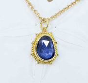 A regal, yet understated jewel! Featuring an amazing 2.13ct rose-cut Blue Sapphire, this pendant is handcrafted and granulated in 18K Treasure Gold (18K gold made with 400 year-old sunken treasure recovered from the Caribbean). Each one of the pendants in this series is made with a freeform rose-cut sapphire providing a completely unique pendant.