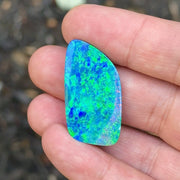 This opal doublet from Australia has all the tropical colors and hues you could ask for. The vibrant blues and greens look just like a tropical ocean and the edge, with its glittering pinks is like pink coral sands. Weighing 28.47cts.