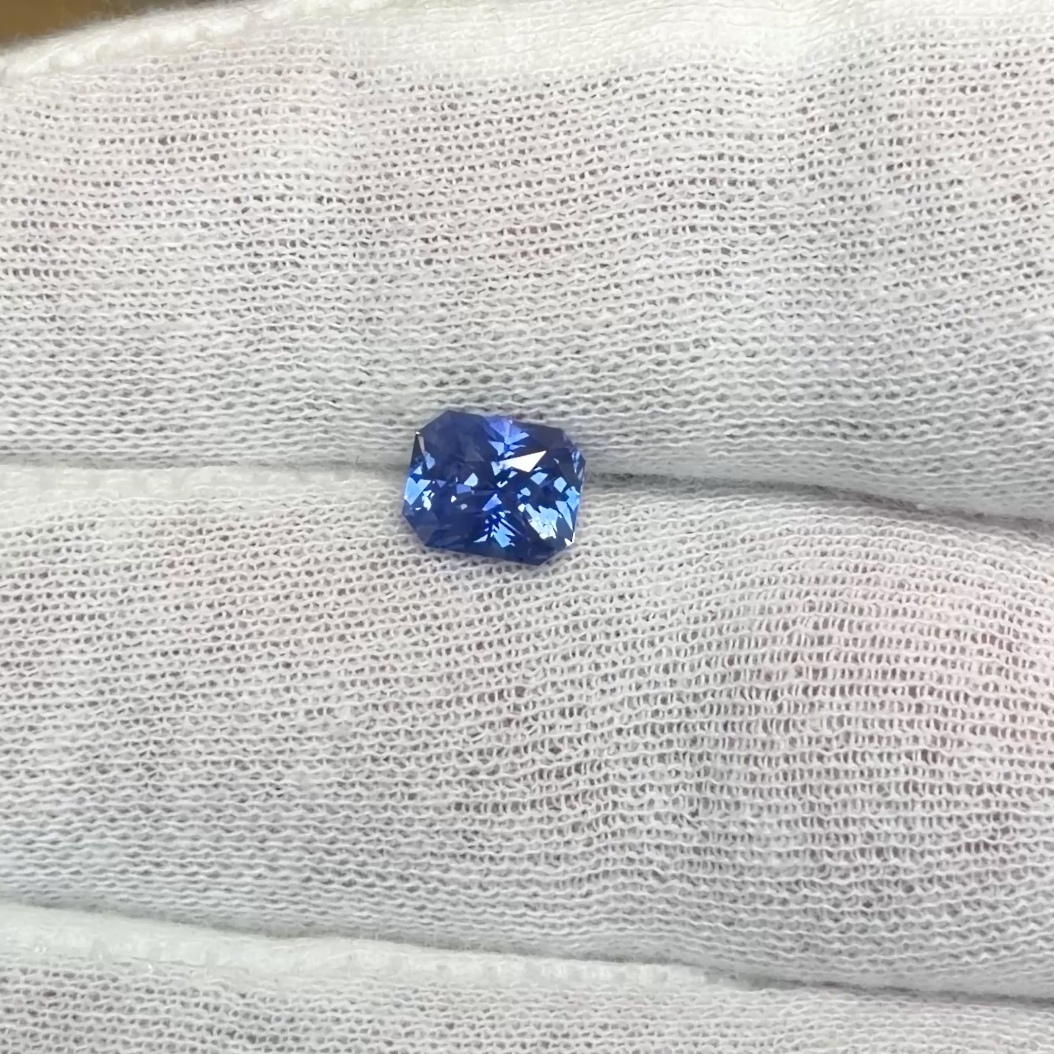 This is a truly gorgeous radiant-cut, 2.04ct periwinkle sapphire.