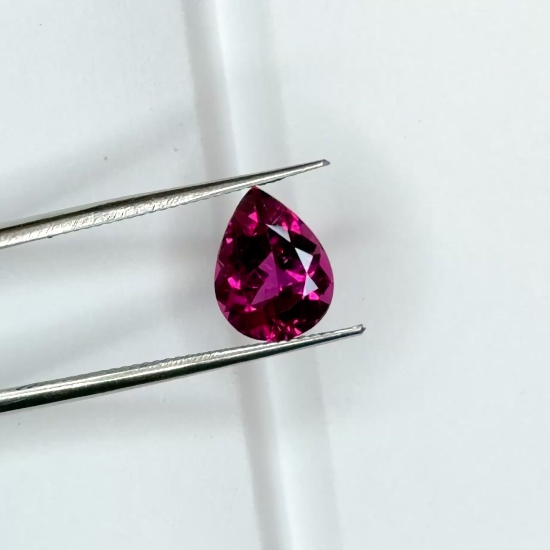 This luscious raspberry-red tourmaline has been cut into a lively pear-cut. Weighing 1.71cts, it is wonderfully cut and would make a fantastic pendant.